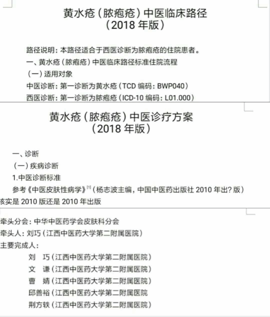 根据中华中医药学会《关于发布风温肺热病(重症肺炎)等56个中医优势病种中医临床路径和中医诊疗方案(2018年版)的通知》,江西中医药大学第二附属医院皮肤科主持的《黄水疮(脓疱疮)中医临床路径》(2018年版)和《黄水疮(脓疱疮)中医诊疗方案》(2018年版)发布。